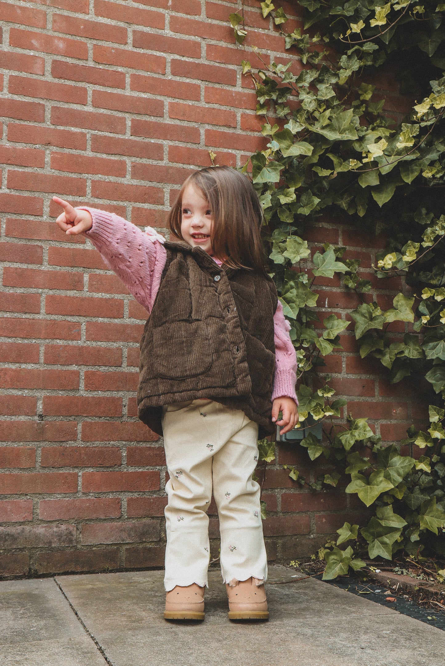 Romy pants is an all season must have item! It features elastic waistband for comfort, front pockets and beautiful detailing such as the flower embroidery and the curvy trimming at the bottom.