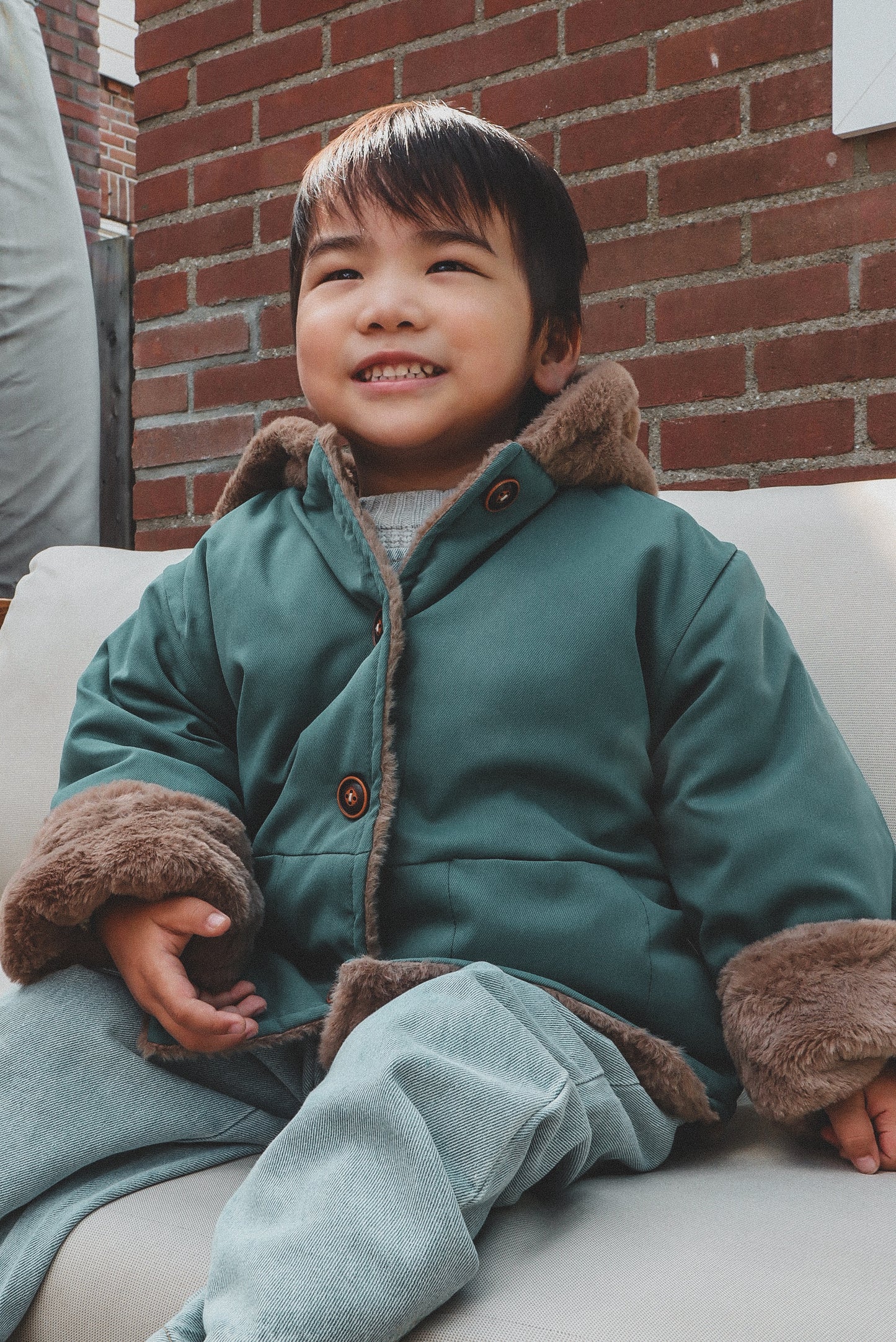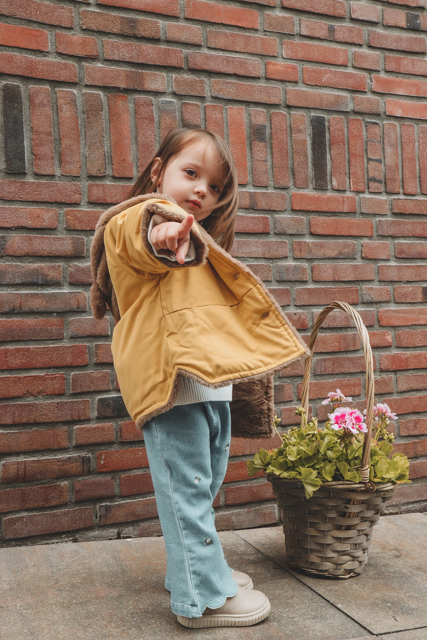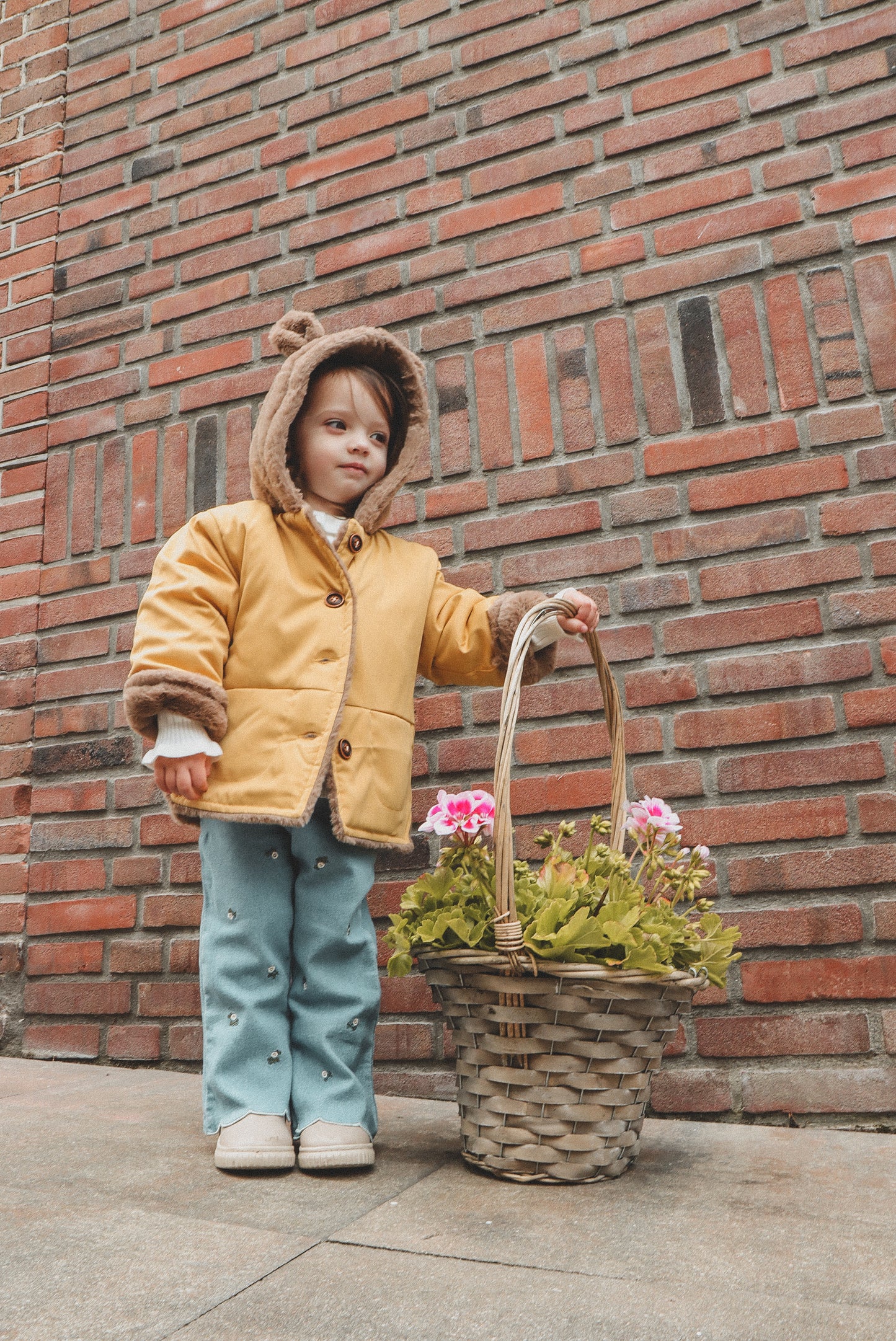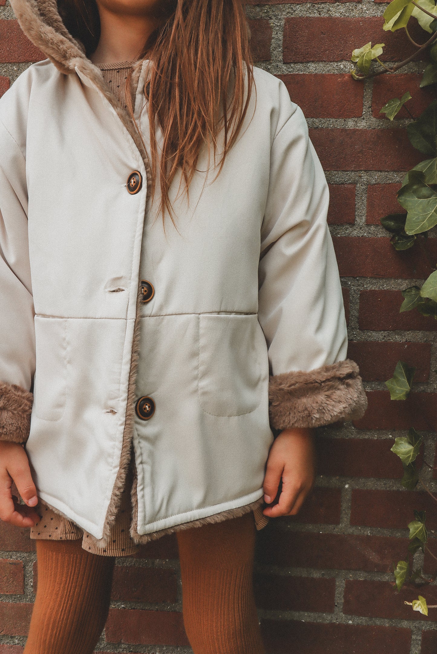 Poe jacket is a hooded bear jacket with fully fur lining to give extra warmth to the children in the Winter. It has two pockets and button fastenings at the front. It comes in 3 distinct colours; Beige, Green and Yellow.