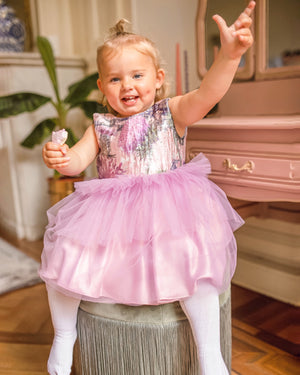 Victoria Dress - Purple Floral Jacquard Tulle Dress